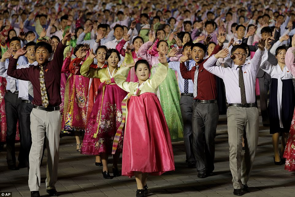 當日在首都平壤戶外舉行的這場派對,一共有上千名北韓民眾隨著音樂熱舞,每當每歌與歌之間的音樂空檔出現時,民眾紛紛熱烈地互相擊掌、鼓掌。據《每日郵報》記者觀察,「男性清一色穿著廉價西裝加領帶,女性則穿著鮮豔民俗服裝,每個人都顯露出過度歡愉又整齊劃一的肢體動作及情緒表現,明顯看得出來經過好幾個月的排練。」