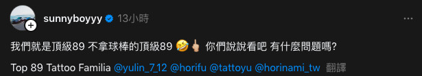 此外,王陽明也在文中寫下「我們就是頂級89,不拿球棒的頂級89,你們說說看吧!有什麼問題嗎?」