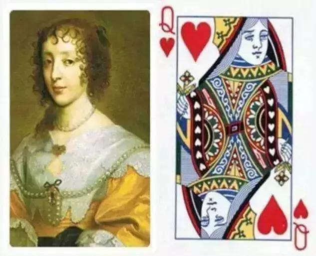 14世紀時,英國北部的蘭開斯特王族是以紅玫瑰當象徵,南部的約克王族則是用白玫瑰,在經歷了玫瑰戰爭之後,兩個王族終於和解,並且把紅白玫瑰結合在一起,所以卡牌上的皇后手上的花被認為是玫瑰花,象徵和平。