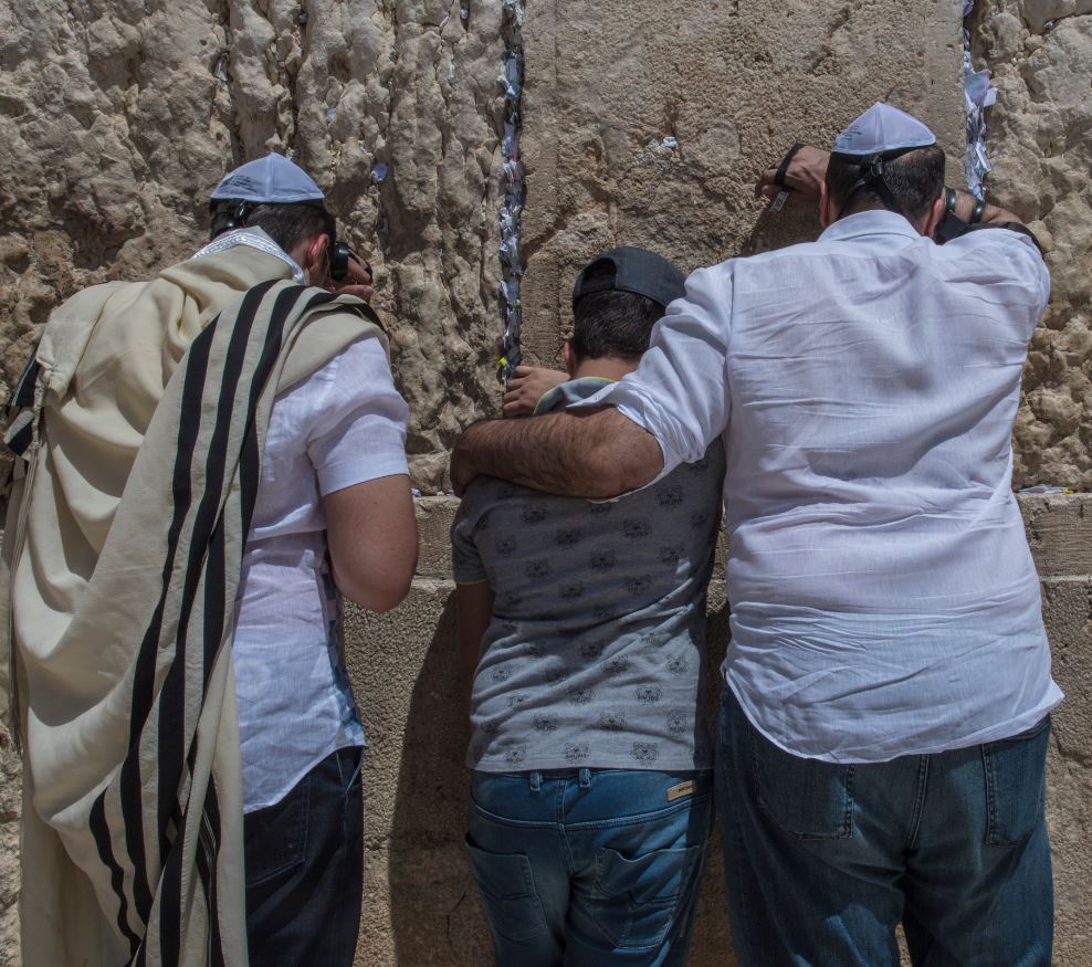 當猶太人輾轉流離後再重返家園時,就只見到一座殘缺的西牆,當下看到那一面牆,沒有人無法不撫牆慟哭的,因此「哭牆」的名字和傳統由此而來。然而,這道牆被視為猶太人「團結」的象徵。據說羅馬人佔領耶路撒冷時,猶太人常聚在這裡哭泣。過了千百年後,每到安息日,信徒就會走到哭牆來向神禱告。
