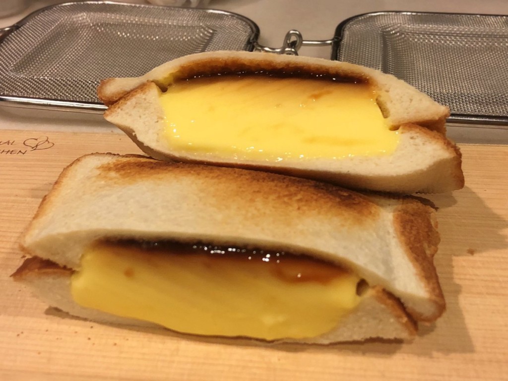 大家在吃吐司的時候裡面會夾什麼?在日本推特有一位網友「@SW_Chief」平常最喜歡的就是自製各種口味的熱壓吐司,只要你所能想到的食物他都會包進去嘗試,像是蘋果、香蕉、酸奶、地瓜、蕎麥麵等等,除了鹹的和水果之外,他也挑戰了放入「甜食」,因此他跑去買了巨型布丁