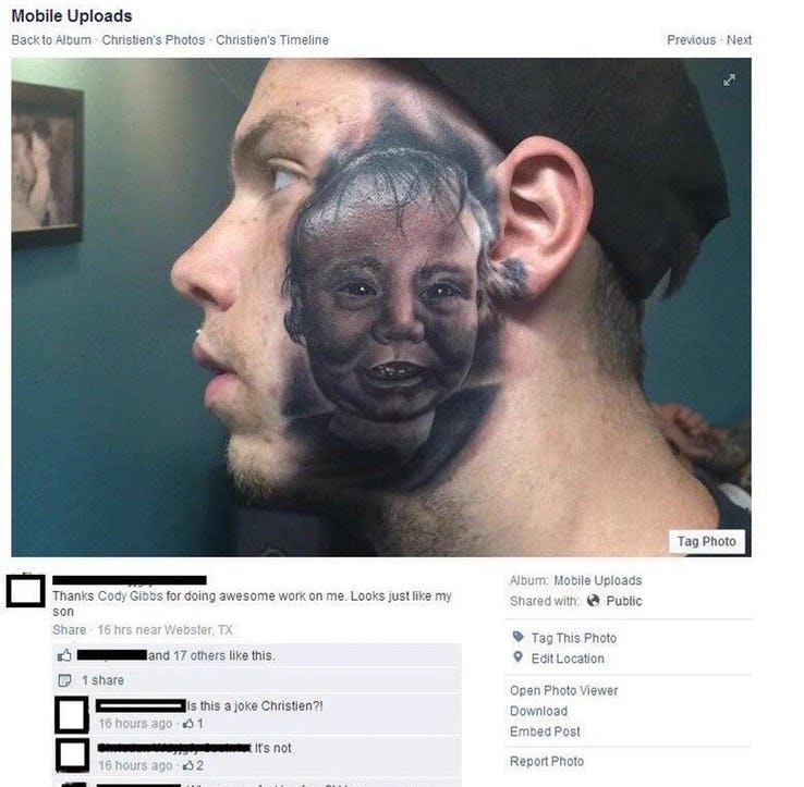 10. 你有被嚇到嗎?我剛剛被嚇到了…他還留言說「謝謝Cody Gibbs,這個刺青真的跟我兒子一樣!」