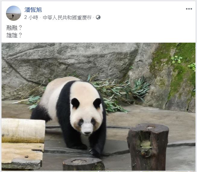 根據高雄市觀光局局長潘恆旭的臉書發文可以知道這則消息,首先在下圖中可以看到它的定位是在中國的重慶,也是貓熊最盛產的地方,接著貼文的內容只是耐人尋味地寫下「融融?雄雄?」這樣的字眼,如此看來「貓熊贈與」計畫是有譜了,而融融和雄雄就是將要來到高雄壽山動物園的一對公母熊貓的名字。