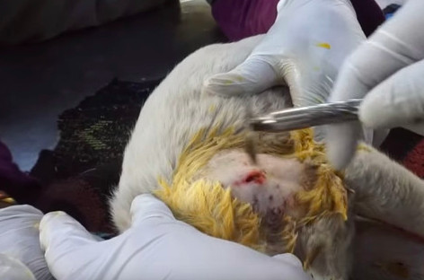 在影片中看到,狗寶寶肩膀上有2個很深的傷,疑似遭人以利器攻.擊,傷口隨之而來是劇烈的疼痛,讓狗寶寶招架不住、動彈不得,印度救援團體Animal Aid Unlimited收到情報,趕緊到現場拯救這隻可憐的寶寶。