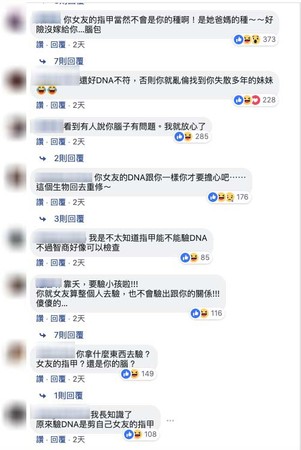 其他網友瘋狂留言吐槽笑說:「真的是超沒智商,還以為真的是被帶綠帽,結果是本身就沒腦袋怎麼帶綠帽」、「先驗自己的智商好嗎」、「一樣的話才真的要緊張。」