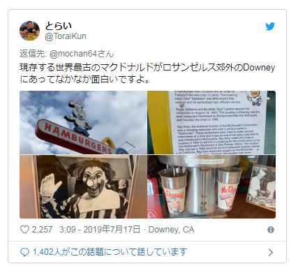 「現存世界最老的麥當勞在洛杉磯郊區的Downey,真的很有趣」