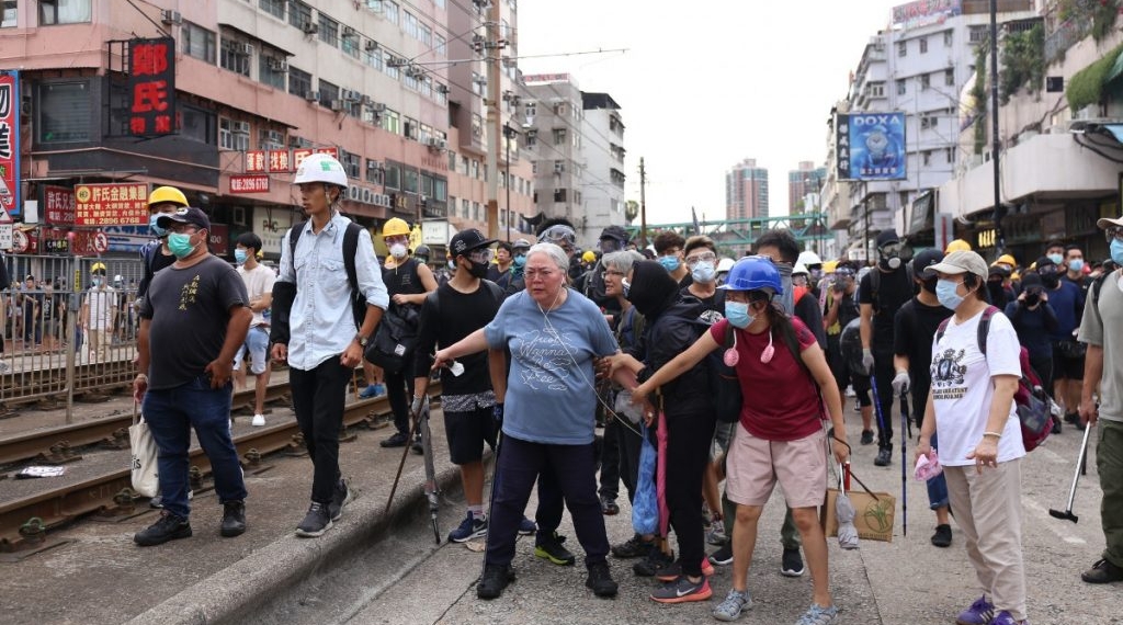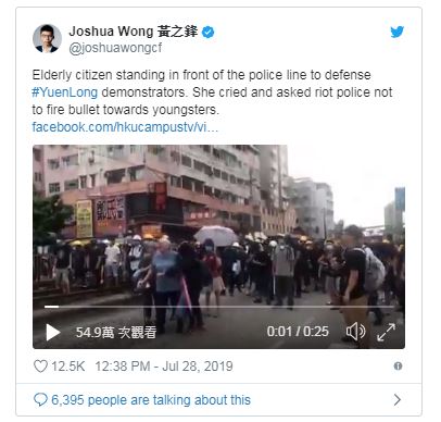 雖然每次的遊行都會發生衝突,但是為了自由香港人民還是持續上街,攝影師也會在旁邊記錄每一刻,這張照片就是在7月27日的遊行中被勞蕾爾給拍下的。從照片可以看見有一名老奶奶拄著拐杖站在武裝完備的警察們旁邊,向警察們叫喊,即使她被行軍的警察們淹沒了,但她還是絲毫沒有露出一絲恐懼。勞蕾爾也在28日分享了這張照片,並說她「憤怒而且無所畏懼。」而這張照片其實是在回應香港著名的抗爭者Joshua Wong的推特影片,他在影片內文寫「她哭著懇求警方停止向示威者發射橡皮彈。」
