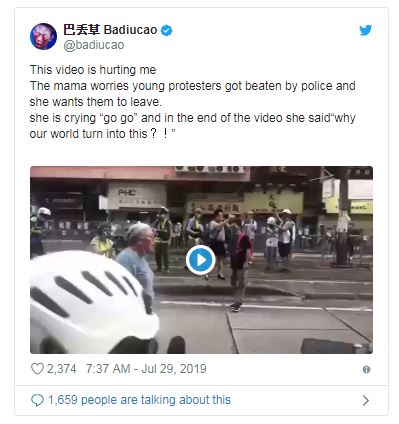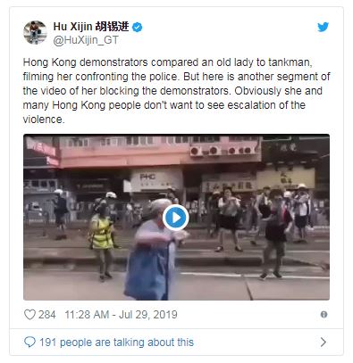 不過這張照片在PO出後竟然出現了戲劇性的轉折,根據shanghaiist新聞報導,其實這位老奶奶是在對遊行者咆嘯而不是在對警察咆嘯。勞蕾爾的instagram上面PO出的這張照片上面也有很多人留言其實這位老太太是在對雙方咆嘯,不是只對警察,因為她兩邊都有家人,希望抗議者們停下來。但是目前也沒辦法證實到底哪一種說法才是真實的,因為現場的錄影畫面都相當混亂吵雜,沒辦法聽清楚她到底是在說什麼。