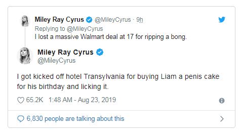 首先麥莉公開的就是自己2012年時為什麼會被《尖叫旅社》換掉的原因,原來是因為那時她生日買了一個男性生.殖.器官造型的蛋糕,而且她還舔那個蛋糕,之後她的位子就被賽琳娜取代了。之後《尖叫旅社》上映後大賣了10億美金。根據《THR 》報導,索尼當時是因為害怕這件事情會破壞迪士尼的形象所以才決定把麥莉換掉,不過目前索尼還沒有公開證實這件事。