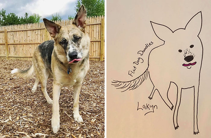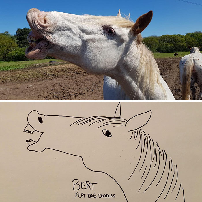 「我覺得人們喜歡牠們,是因為我們的狗狗們都有如此可愛的個性,這些塗鴉以簡單有趣的方式展示了這些個性。當人們委託我畫他們的狗 (現在還畫了貓、馬、豚鼠、壁虎和孩子!) 時,我喜歡和他們聊聊他們的特殊之處,讓他們的個性在作品中閃耀。」