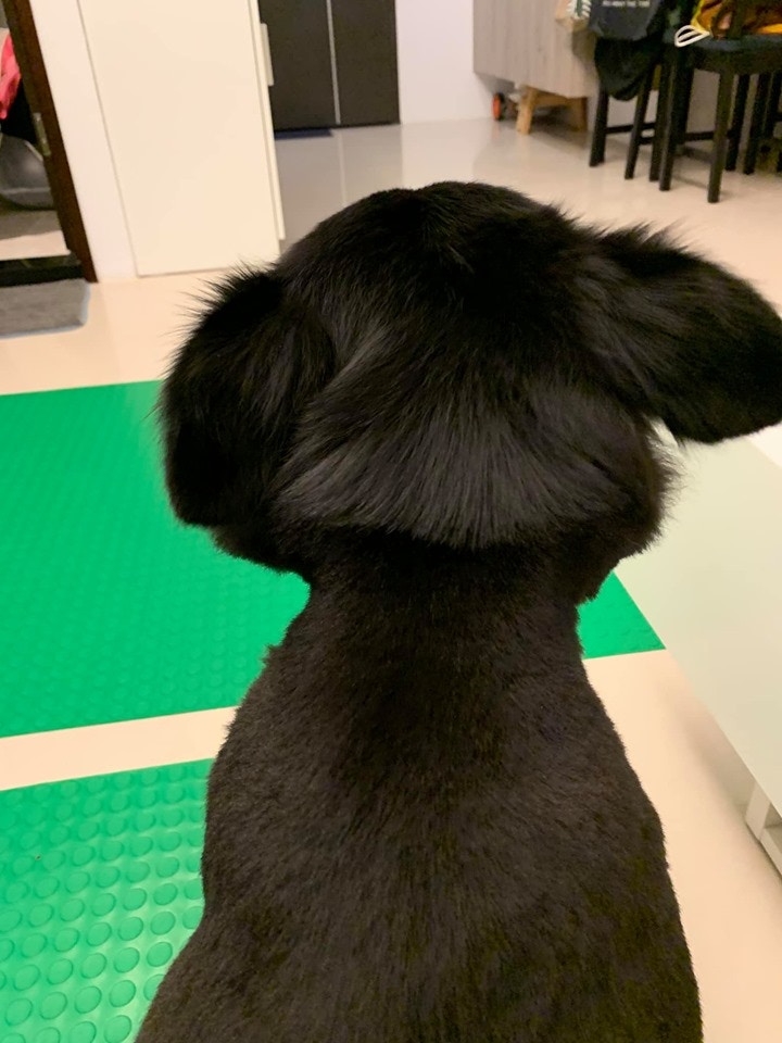 從主人分享的照片來看,已經變成「妹妹頭」的Osa正在發呆看着前方,而牠頭部後面的毛髮都被剪成平劉海,看起來真的是百分之百「妹妹頭」。