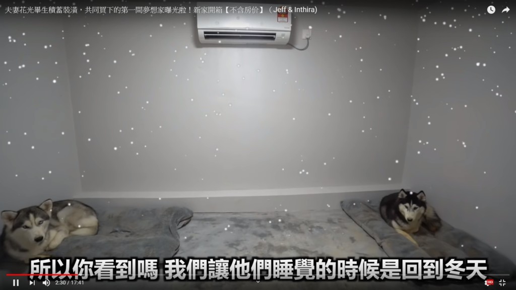 重點是,他們很寵愛犬,睡覺的時候決定要讓牠們回歸冬天所以還裝了冷氣。