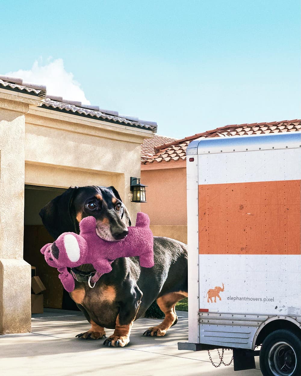 因為薇薇安也有以為自己是很大隻的狗狗的症頭,所以博耶就乾脆幫牠做了這一系列的照片,讓薇薇安看起來真的很大,也算是圓了薇薇安的一個夢?