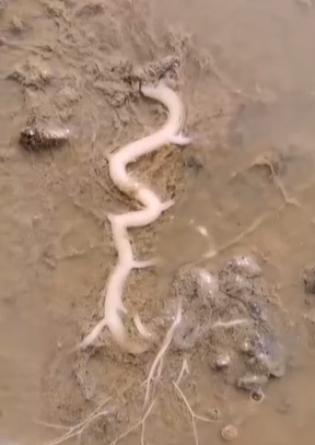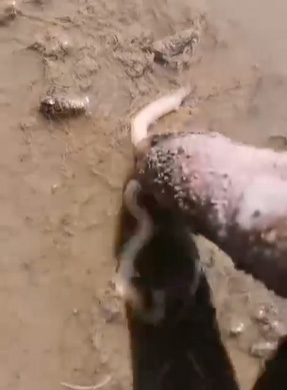 網路上最近瘋傳著這支影片,不知道哪裡的海邊出現一條狀似蚯蚓的不明生物,影片拍攝者手賤忍不住就給它戳下去了…
