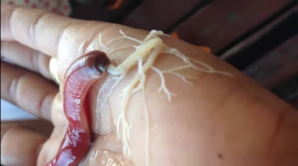 來來來,看影片更有魔性!經網友查證,原來這是一種紐形動物門生物 (ribbon worm),簡稱「紐蟲」,它們大約有900多種,跟扁形動物一樣也是兩側對稱、三胚層、無體腔的動物,腦部只由一環四個神經節組成,但具有完整的消化道、肉食性且無心臟與循環系統,而影片中伸出來的,是他們為了捕食與防衛而從口伸出的消化器官。
