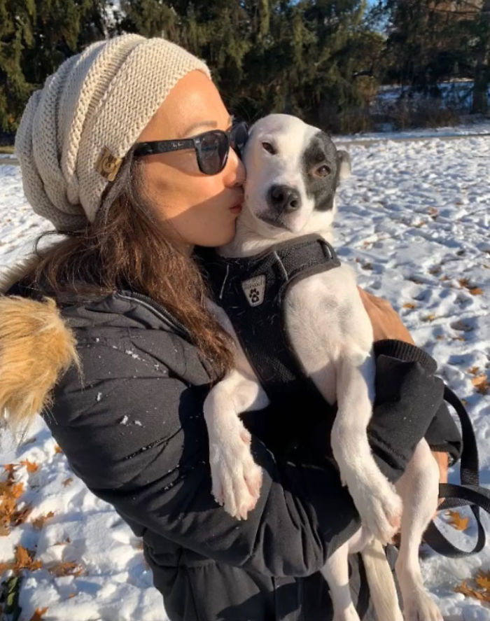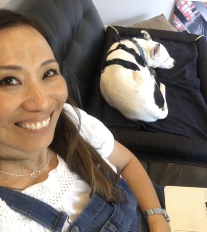 根據《boredpanda》報導,特蕾莎 (Teresa Hwang) 是加拿大小學的特教老師,她分別在10歲跟20歲時被狗咬過2次,導致她一直都非常怕狗。