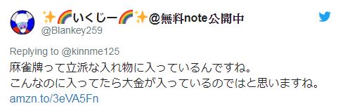 「麻將牌都裝在很體面的盒子裡。用這種盒子裝還會讓人以為裡面裝了大量現金呢。」