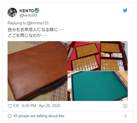 「自己也是去年成年時收到麻將…該不會家家都如此吧……」