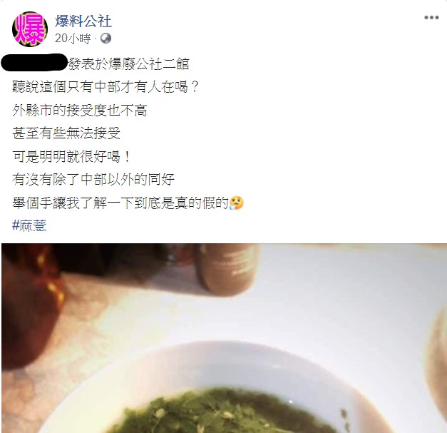 沒錯,就是上圖這碗長得有點像「翡翠豆腐羹」的神祕小吃,不知道你有沒有吃過呢?好啦,先來公布一下答案,聽說這是台中巷弄裡的傳統小吃,叫做「麻薏」。「麻薏」又叫做麻芛,是盛產於夏季的「黃麻嫩芽」,據說中部常用麻薏煮湯,不過花蓮也有原住民把它拿來煮野菜湯。這篇文章的留言處也有網友表示,宜蘭也曾經吃過這樣的小吃。
