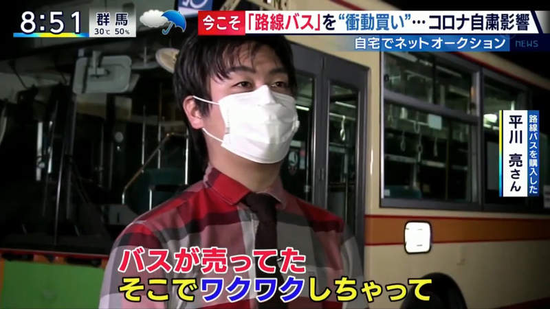 買下一台公車的日本網友叫平川,自從他在推特上面分享自己買的公車之後,就瞬間爆紅。你一定想說,到底是說衝動才會直接買一台公車對吧?其實他會買這台公車都是因為武漢肺炎 (又名新冠肺炎) 的關係。