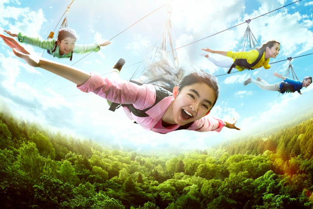 根據《soranews24》報導,這個新設施會在7月17日開放,分為天雕 (Sky Eagle) 天鷹 (Sky Hawk) 兩種。天鷹整個溜索有0.4公里、離地32公尺高,上去之後可以讓遊客以每小時50公里的速度前進!而且最棒的是,如果你跟你朋友的總重量小於140公斤的話,你們還可以一起飛!