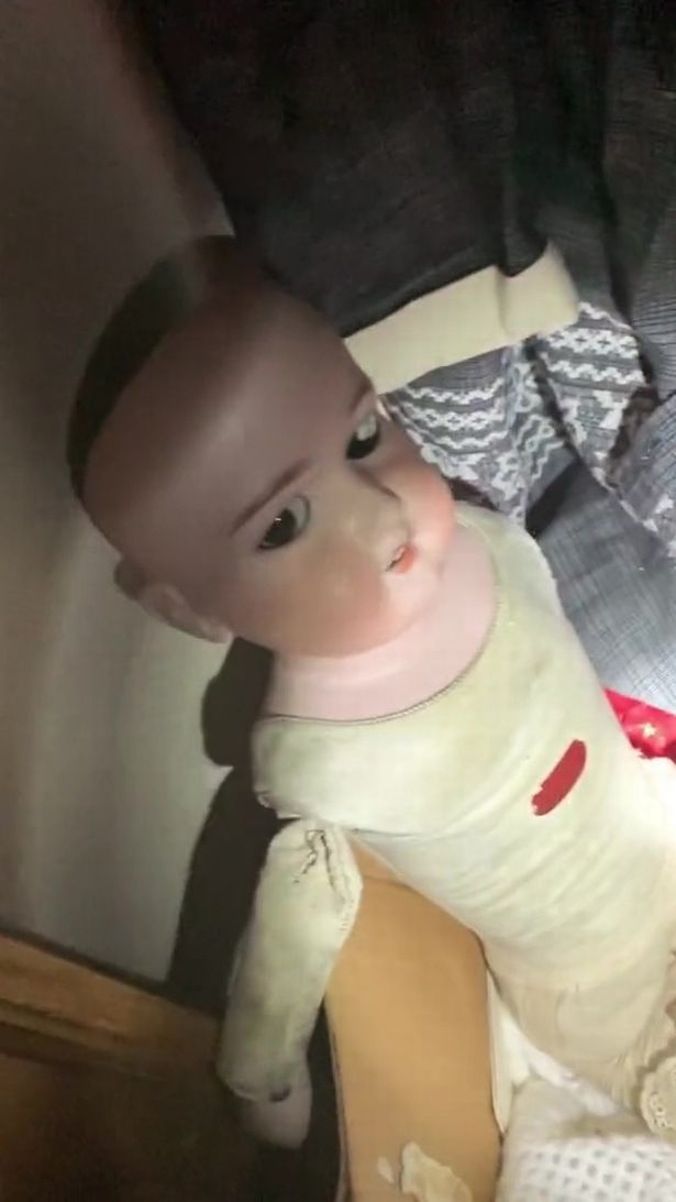 儲藏室不高,裡面卻有許多紙箱,放著一些舊東西,像是懷錶,瓷碗,還有人臉的瓷碗和有點毛的洋娃娃。女子在影片中解釋,自己一個人在家,還是很想知道後面有什麼,所以就進去了,劇情完全符合驚悚片的節奏。