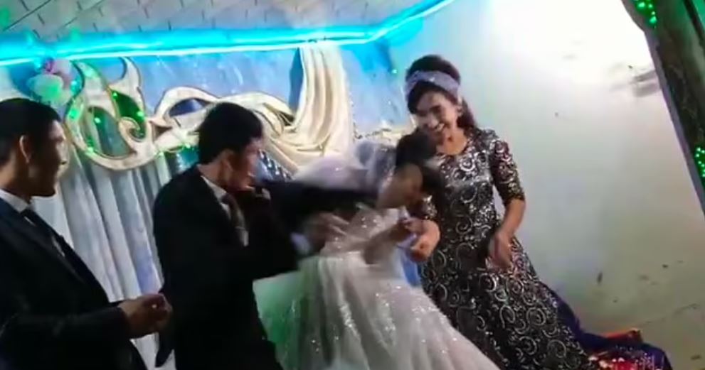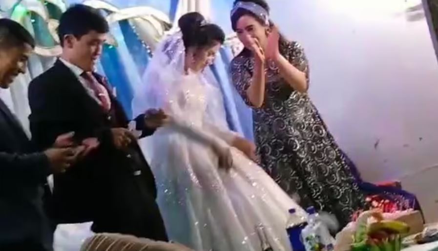 再來看看另起因結婚引發的糾紛!根據《Dailymail》的報導,烏茲別克一對新人舉辦婚禮,主持人為了帶動現場氣氛,讓新郎和新娘玩起趣味小遊戲,他們賣力地在台上競賽,台下的賓客也紛紛加油打氣。