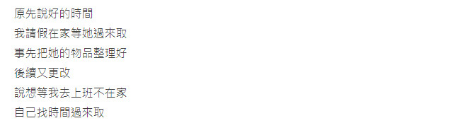 原PO不知所措,連日吵架後「因為害怕還會發生,選擇妥協開放式關係」,但這只是他勉強自己的下下策。忍耐一週後原PO發現無法自欺欺人,決定分手並歸還女友留在家的物品。沒想到女友接受分手後還凌晨酒駕去糾纏原PO,他完全無法理解女友的心態。最後物歸原主、處理完分手,原PO封鎖她的一切:「拜她所賜,我對感情產生陰影,目前還需要精神科藥物治療。」