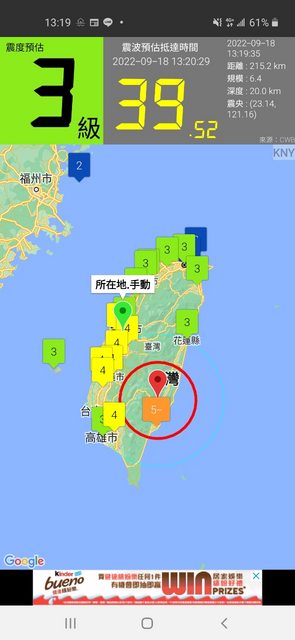 17日晚間台東發生芮氏規模6.4地震後,餘震不斷全台搖不停,18日下午2點44分左右又發生規模6.8的超有感地震,導致不少災情傳出。不少民眾就抱怨,連2日的頻繁地震手機國家警報卻沒響,因此感到擔心,有網友就大推一款APP,不僅地震前就能收到通知,還有倒數計時的功能!