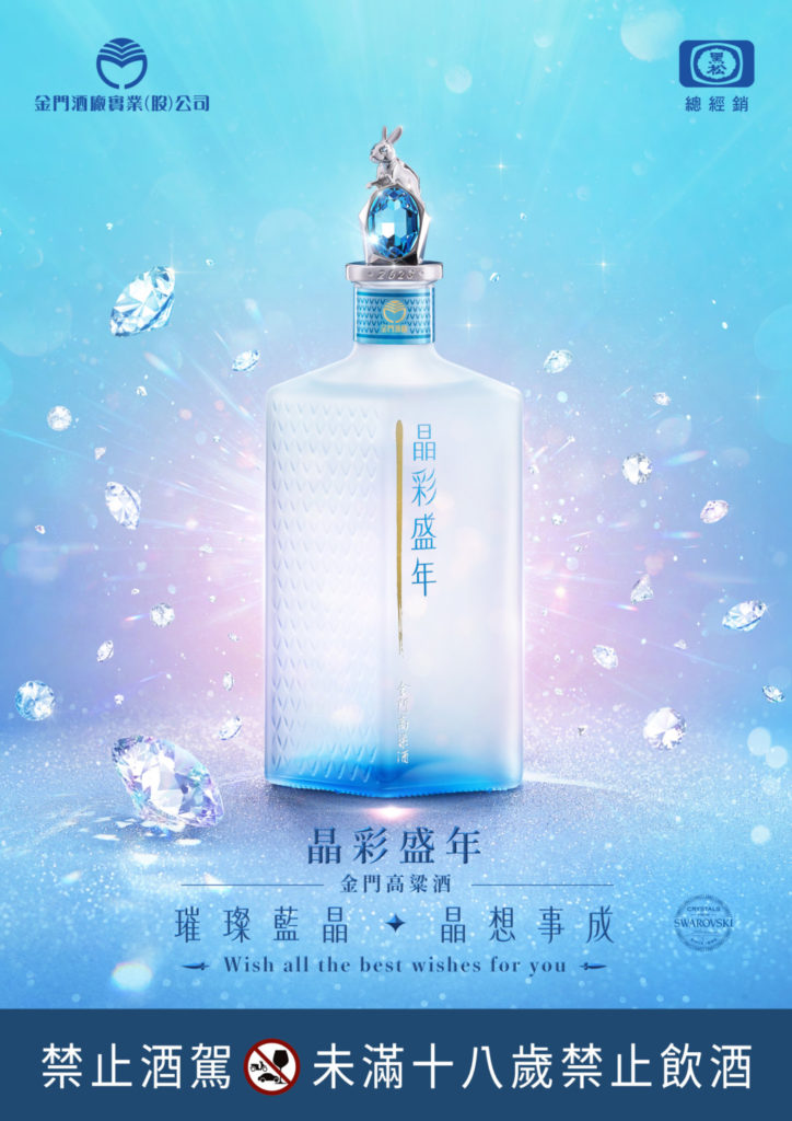 國師唐綺陽每年總會為大家分析運勢,她直言:「2023 年冥王星首次進入水瓶座,會有許多發展、新格局的可能性,只要有所付出,就有實踐所願的機會。」水瓶座的顏色接近藍綠色,也類似天空的藍,象徵著展望未來。唐綺陽特別為「晶彩盛年金門高粱酒」指定選用年度幸運色-藍綠色,並採用Swarovski元素璀璨藍晶作為2023年度祝福,搭配飛躍的銀兔作為點綴,期許大家在突破框架勇敢追夢的過程中,都可以「晶」想事成、鴻兔大展。唐綺陽也表示:「每一顆璀璨藍晶都代表了一個夢想,當你拋開過去,勇於嘗試,努力朝夢想奔跑,所有夢想都機會在今年實現,這款酒真的很特別!」