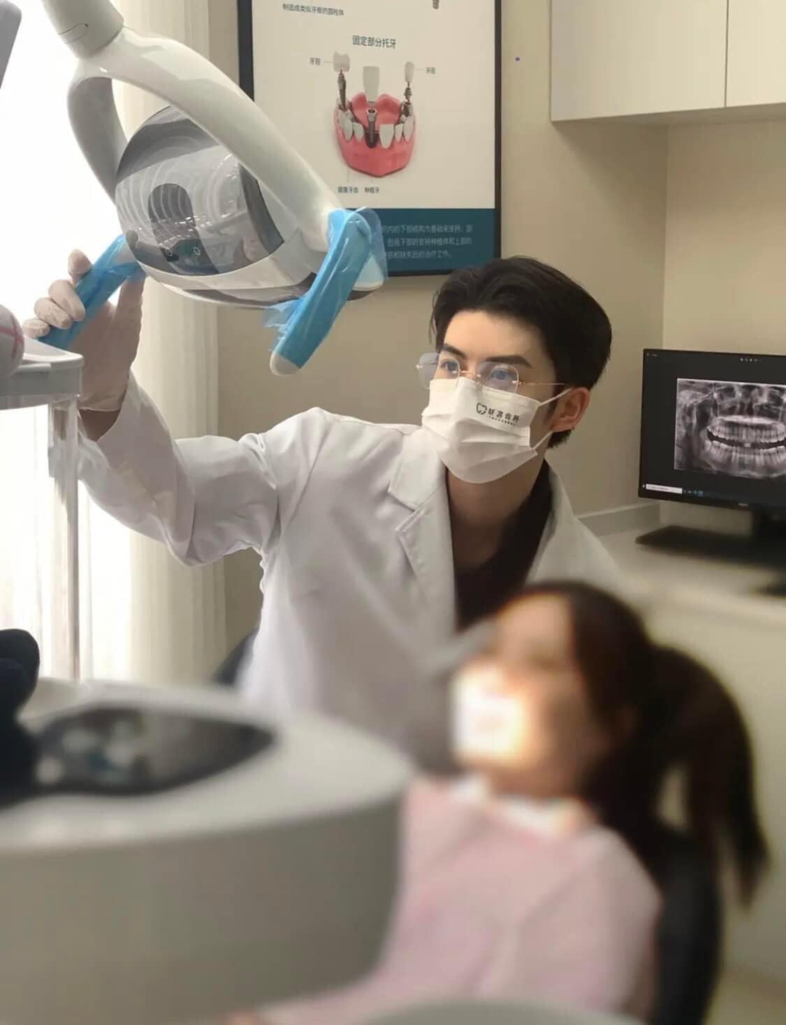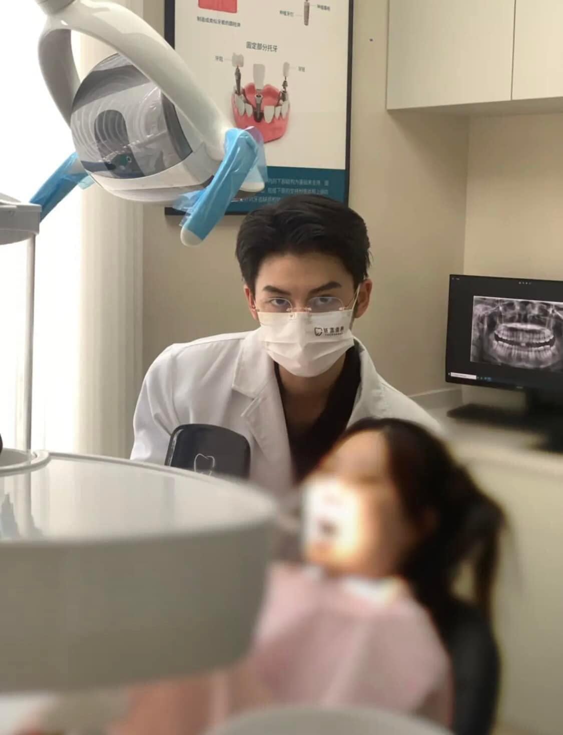 從畫面中可以看到,背景為某間牙醫診所,一名穿著粉色衣服的女病患躺在長椅上,一旁還有位醫師,雖然戴著口罩,但明顯是個不折不扣的帥哥。