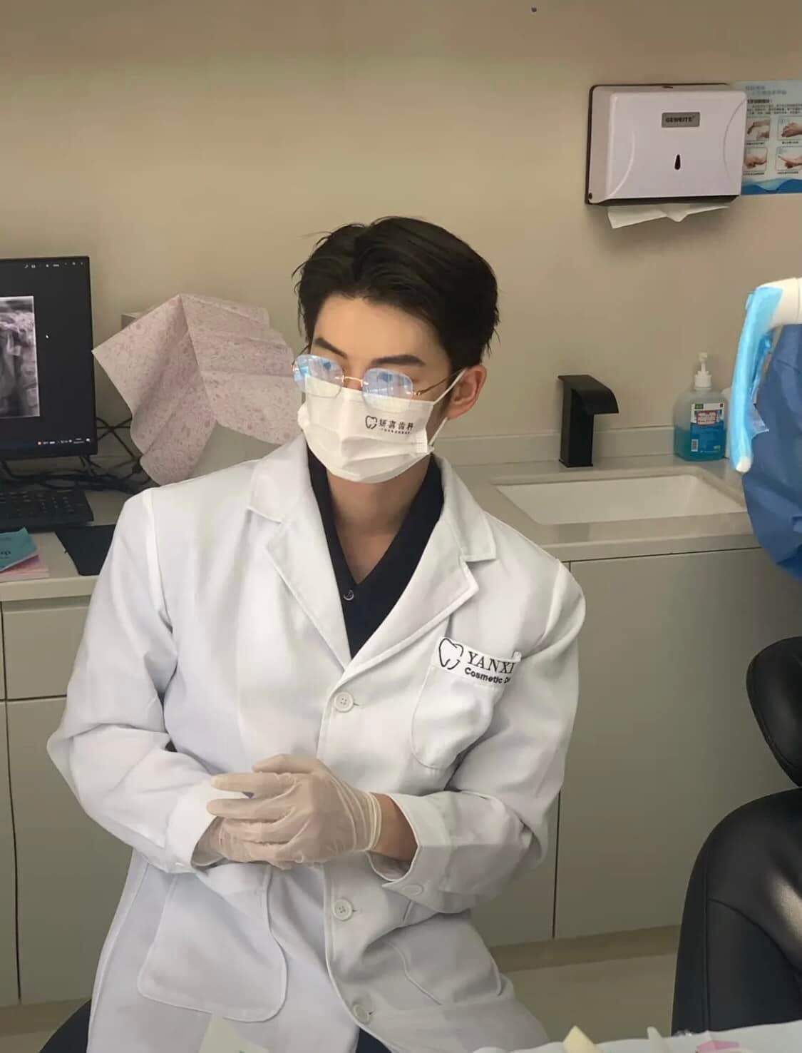 該名牙醫外型斯文、濃眉大眼、梳著旁分油頭,還戴著細框眼鏡,身穿白袍、專心看診的模樣,斯文中透露出一股霸氣,似乎只要坐在原地,就能把女病患迷得不要不要 (感覺就連男病患也會淪陷) 。