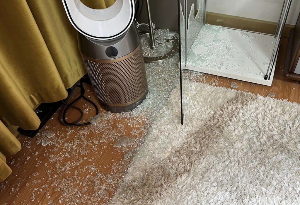 根據媒體《mothership》的報導,新加坡一名網友亞當 (Adam Tan) 4月28日在臉書上分享怵目驚心的一幕,他約1年前以89元新幣 (約新台幣2000元) 在IKEA購入一組玻璃展示櫃,用來陳列他精美的餐具,使用期間本來都好好的,日前卻無緣無故突然爆裂,櫃子左側那面的玻璃全碎成小塊噴滿地,他左手的小指不幸被割傷爆血。