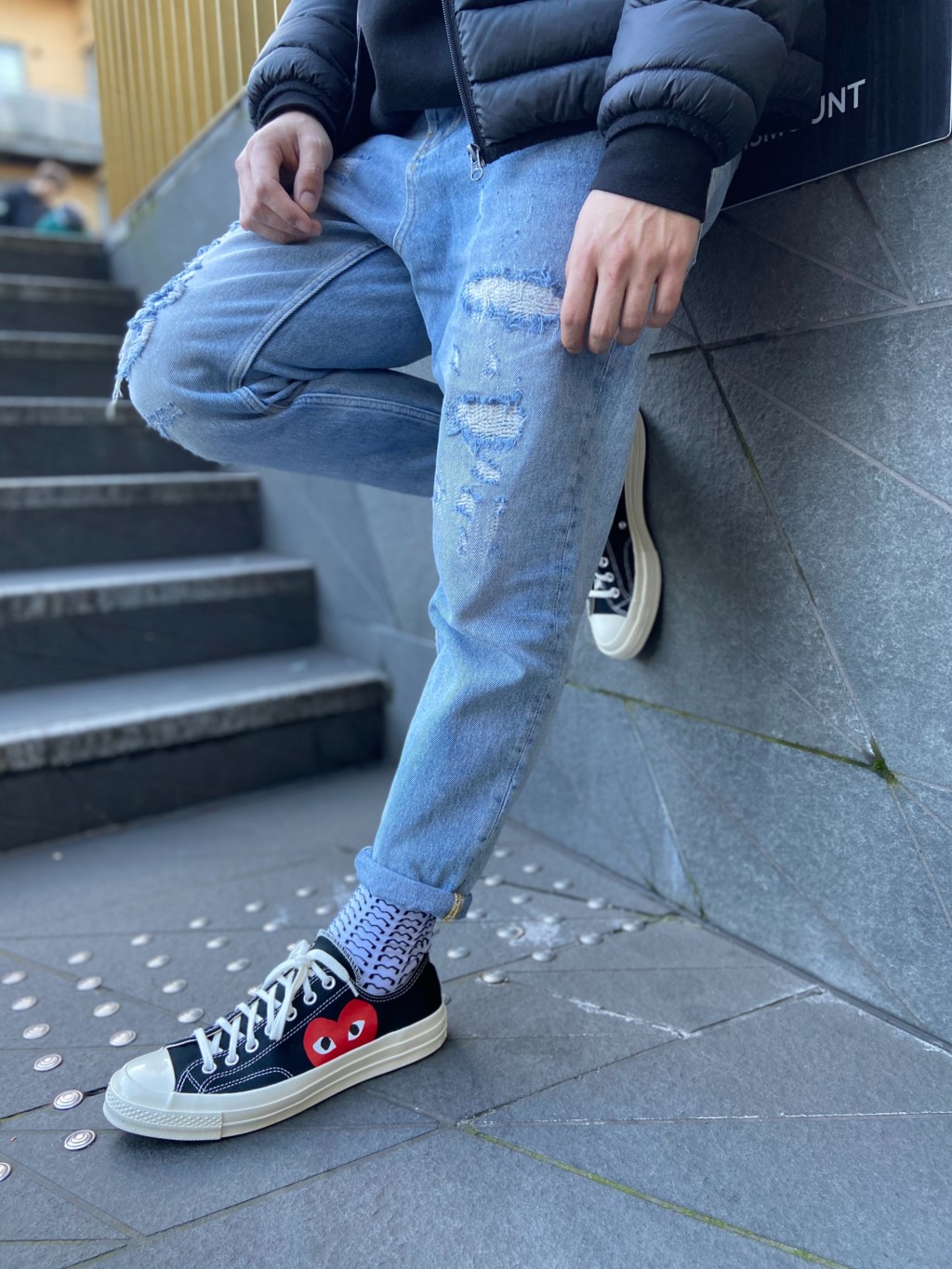 底下網友同樣意見分歧,一派認為破褲很不正式:「破洞牛仔褲比較不禮貌吧」、「身為賓客如果看到周遭沒有一個一樣身穿破牛仔褲+白T,當下不會覺得格格不入?」、「我大概只有大學參加婚禮穿過沒有破洞的牛仔褲吧,還是有事先徵求過新人同意的,因為學生衣服種類不多。 長大後就知道要注意準備這種正式場合能穿的衣服了」、「這不是基本常識?參加這種算正式婚宴本來就不穿牛仔褲吧。最少最少也不要破洞!基本常識沒有被趕出去還懷疑人生」、「正式場合的概念都沒有,什麼叫做不邋遢就可以?」。