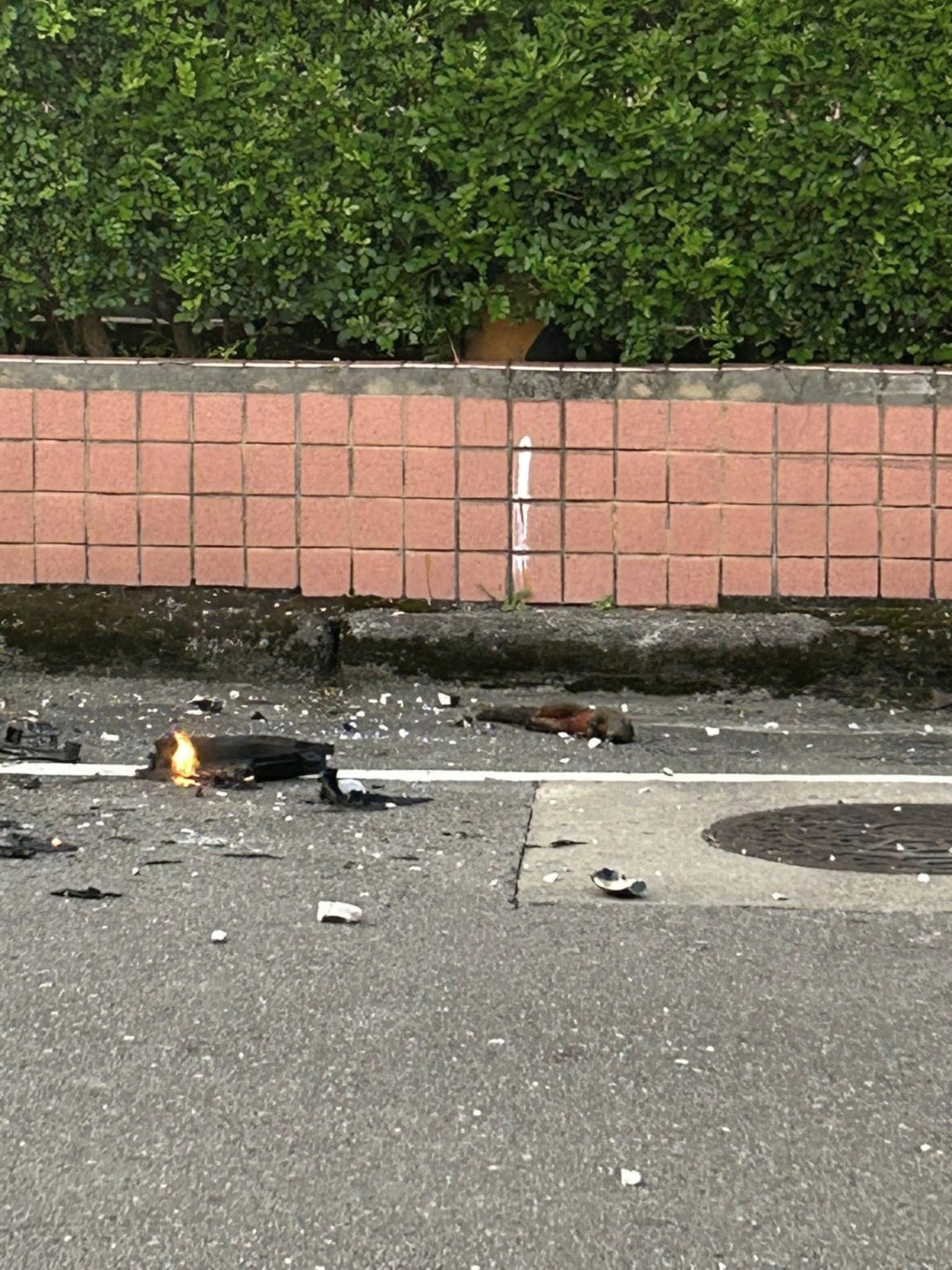 一名男網友在臉書「路上觀察學院」以「一隻玄天飛鼠的降落」為題附上3張截圖。從畫面中可以看到,某處電線桿的變壓器正冒出熊熊大火,下方還有許多燒焦物以及一隻明顯死亡的松鼠。