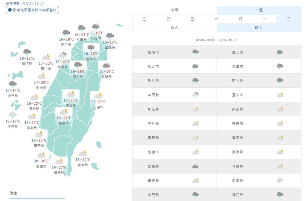 今 (31) 天全台累積雨量很少,幾乎是全台都感受到溫度回升的晴天。前幾天濕冷來不及洗曬的衣服,趁明 (2/1) 天豔陽高照還可以趕快拿出來洗,因為週 (2) 五又要變天了。農曆過年連假將至,但目前天氣預報看來不太舒適,恐又有下一波變天。