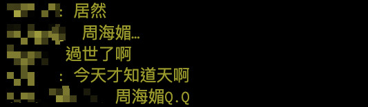 根據《東森新聞》報導,今年「已故影視工作者緬懷片段」中,出現的藝人有汪建民、陳慧翎、石班瑜、徐少強、曾國峰等人,但當畫面出現香港女星周海媚時,卻引發大批網友在PTT議論,「周海湄過世了?」、「今天才知道,天啊」、「天啊!完全不知道周海媚過世,哭」、「完全不知道周海媚過世+1」。