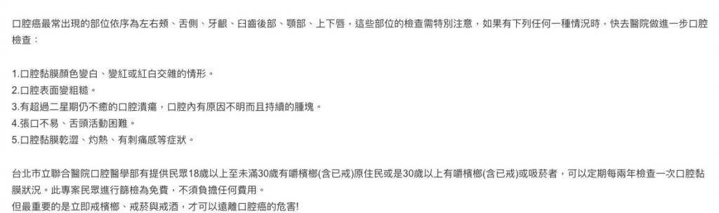 而台北市聯合醫院也在官網寫下,當民眾出現以下5點時,建議去醫院做進一步的口腔檢查。
