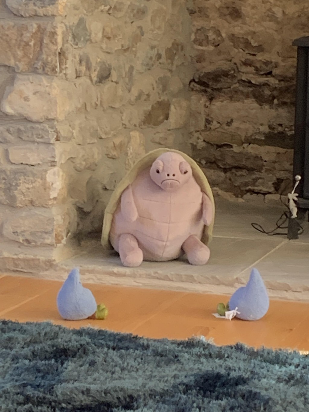本来店里有满满整面墙的Jellycat,不过识货的抢匪把这些小可爱们全都抱走,还自备巨大塑胶袋来装娃娃。奇妙的是,抢匪似乎不喜欢大乌龟「提米 (Timmy Turtle) 」,提米本身长著一张臭脸,奥嘟嘟看着抢匪把身边所有娃娃朋友都带走,唯独自己被留下。