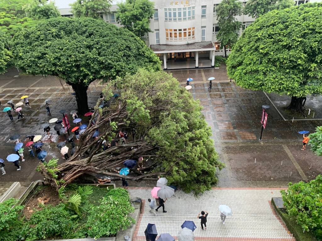 根據媒體《ETtoday新聞雲》、《中時新聞網》的報導,13日下午5點多,台中逢甲大學校內一棵大榕樹突然倒塌,3名學生慘被枝條刮傷,23歲材料系碩一吳姓男學生散步經過則被重壓在樹下受困,當場沒了呼吸心跳,女友全程目睹嚇壞,無論怎麼呼喊都沒有反應。