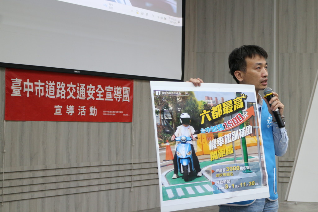 根據媒體《今日新聞》、《TVBS》的報導,台中市政府為鼓勵民眾學會安全騎車、養成正確的駕駛習慣,推出六都最高的「機車駕訓補助」。只要是台中市民,或是年滿18歲在台中市就讀高中或大學的學生,參加駕駛訓練課程並順利考取普通重型機車駕照,就能獲得補助金1500元。