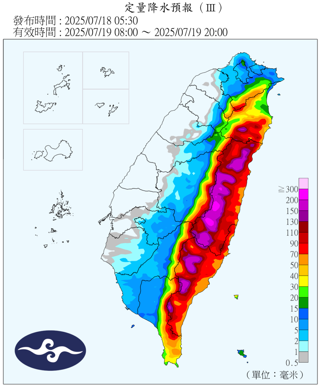 《台灣颱風論壇|天氣特急》示警:「宜花東、恆春今天 (18) 晚上開始,雨勢將快速增強、伴隨陣陣強風,尤其週六 (19) 將有劇烈降雨發生。」因為東半部、恆春半島將直迎外圍環流帶來的東南風,「天氣非常糟,預計雨量會非常可觀!」另外因地形影響,「大台北、基隆北海岸、嘉南高屏沿海」須留意強風。