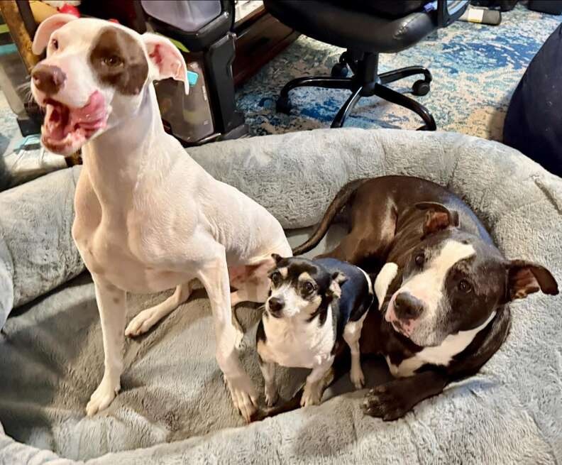 這張照片沒修過,也不是AI生成!根據《The Dodo》報導,奧萊娜·卡吉 (Olena Kagui) 上傳照片後,收到很多網友的關心,很多人擔心白狗狗「凱歐 (Keo) 」生病,長了奇怪的腫塊。但其實照片背後的真相超可愛,那張巨嘴不是「壞咪呀」,而是另一隻黑狗「笑笑 (Smiley) 」被壓在下面而已啦!