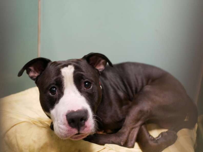 在跟主人相遇之前,黑狗笑笑一點都笑不出來。2018年,笑笑還住在紐約一間動物收容所,幾天後就要被安樂死。奧萊娜看到可憐的笑笑決定先幫忙中途,讓笑笑寄養在自己家,不過後來奧萊娜夫婦決定讓笑笑永遠留下來。後來他們全家搬到夏威夷,這對夫婦還多領養了2狗4貓。