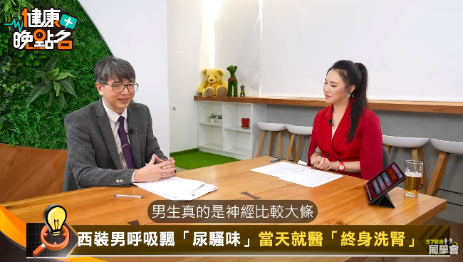 洪永祥指出,這位男主管工作繁忙,習慣忽視身體異常,3年前健康檢查顯示,腎絲球過濾率偏低,他卻認為只是水喝太少或太累、久坐造成的身體反應,直到最近出現嚴重腳抽筋、麻痺,且全身飄出濃烈尿騷味、臉色蒼白,才被家人強押至醫院。