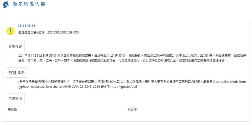 楊柳颱風在過去幾小時強度略為增強,暴風圈也有所擴大,氣象專家吳德榮就在「洩天機教室」專欄分析表示,楊柳預計會在登陸台東前達到最強,之後受地形破壞會快速減弱。不過楊柳已出現清晰颱風眼,需嚴防眼牆附近伴隨16級以上「毀壞性」的強陣風,氣象署也已在稍早針對台東縣發布「颱風強風告警」,提醒注意人車安全並儘速至堅固室內躲避。
