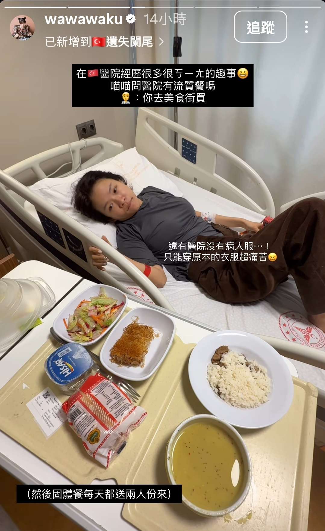 昨晚 (15) 古娃娃在Instagram透過影片更新突如其來的土耳其之旅,夫妻倆初次蜜月就是去土耳其,古娃娃一直想舊地重遊,沒想到這次竟然是一下飛機就被救護車載往急診室。古娃娃在機上突然胃痛,接著右下腹也痛,喵喵在降落前通報空服員,因此一落地就有醫師上機幫古娃娃看診,懷疑是急性闌尾炎馬上送醫。