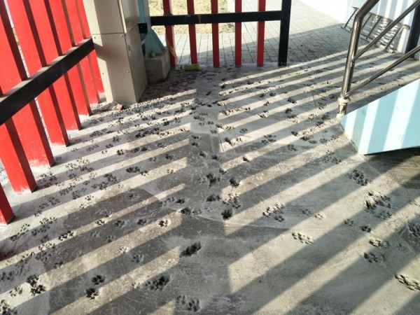 照片曝光後,眾人推測應該是流浪狗半夜闖進工地開趴了,「派對動物!」、「浪浪夜店的概念」、「根據腳印數量可能超過一百隻」、「不用加防滑磁磚,多好」、「根本玩開了的狀態」、「好可愛啊!不過又要重用頭就很大了」。