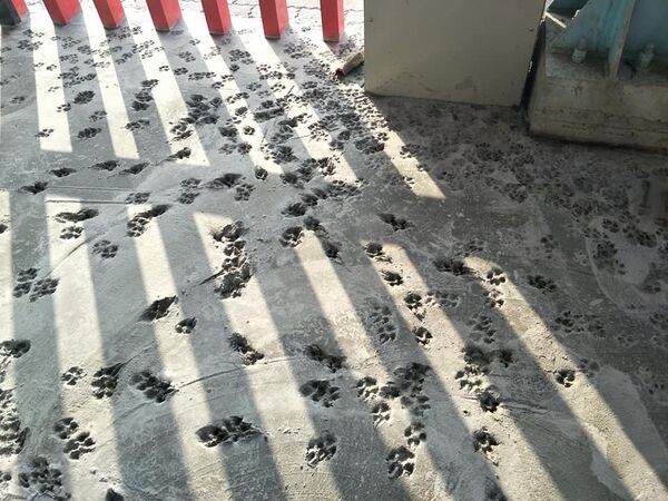 工地剛鋪好水泥,通常都會設立「水泥未乾」的警語,一方面是防止發生意外,也怕誤入而留下痕跡。不過警示防得了人,卻阻擋不了看不懂字的萌嬌客。