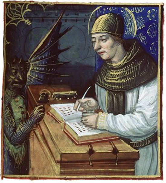 在夜晚,這名僧侶發現自己時間實在不夠,因此他向轉向惡魔求救,此時撒旦回應了他。撒旦幫助僧侶完成了書籍,但代價是僧侶必須獻上自己的靈魂,在書中,僧侶畫下了惡魔的樣子。
